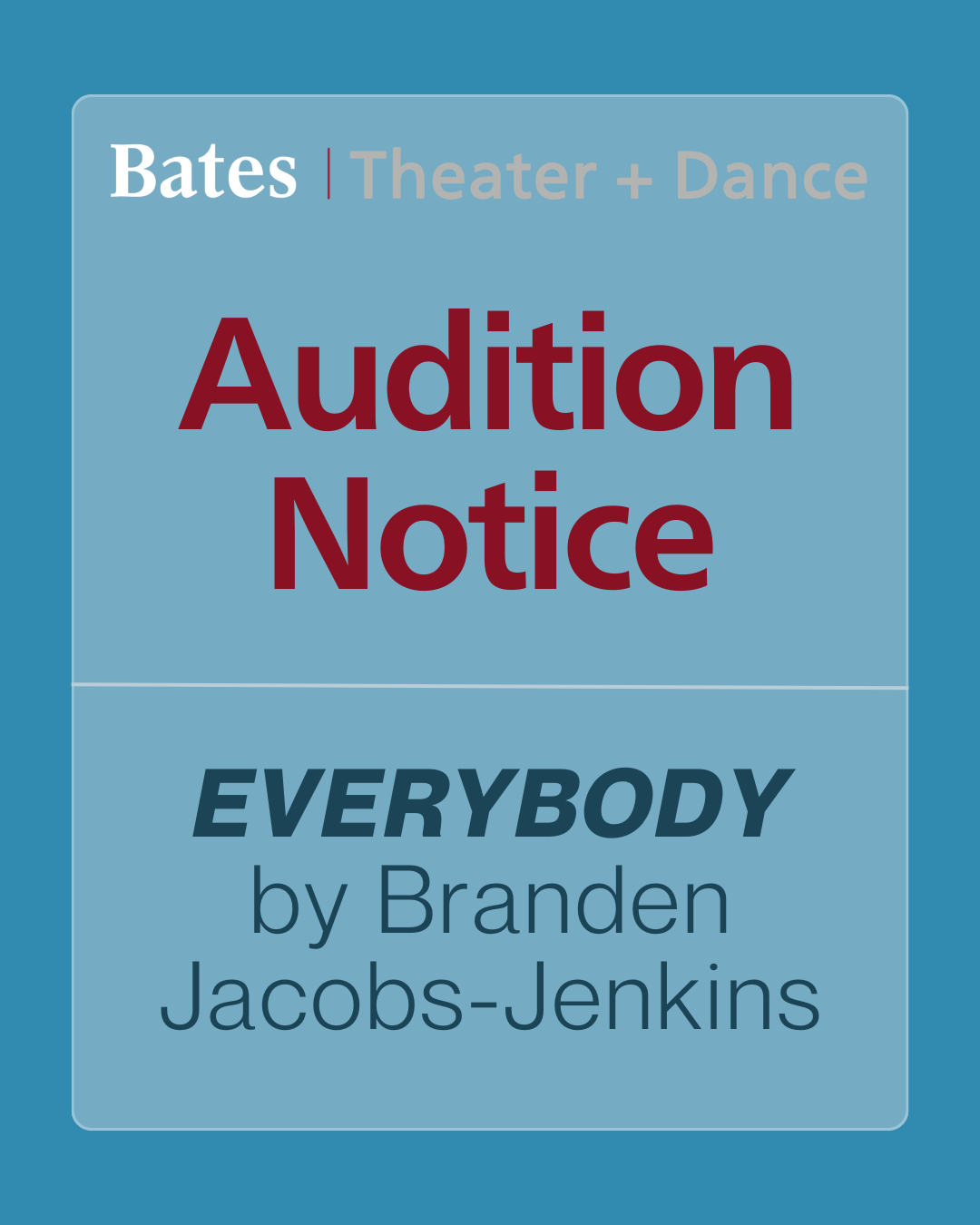 AUDITIONS Everybody by Branden Jacobs-Jenkins Faculty Directed by Tim Dugan January 15 & 16, 4:15 - 7pm